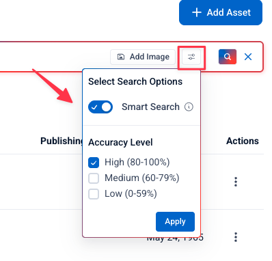 Search results seem off: Try lowering the accuracy setting to broaden results. Also keep in mind that newly uploaded assets may not be indexed immediately and therefore may not appear in AI Discover results right away.