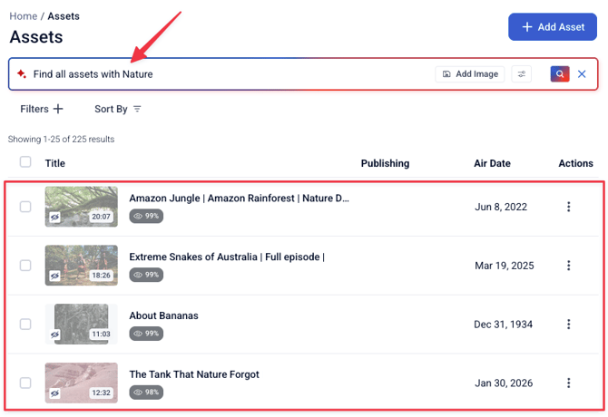 Sardius AI Discover is a powerful new way to find content in your asset library. Instead of searching by title alone, you can now search by what's inside your video — spoken words, on-screen visuals, uploaded images, and more.