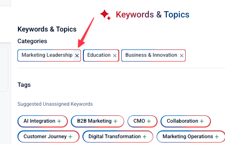 Keywords that have already been selected will appear applied and can be removed using the x button.