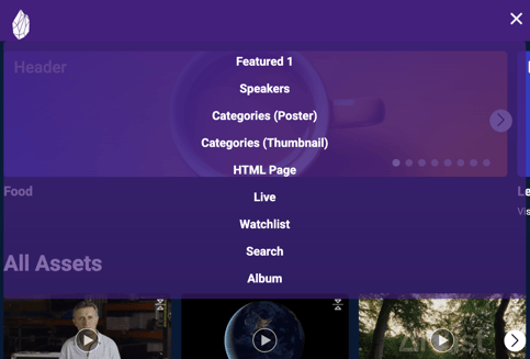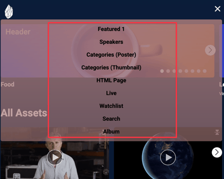 You can enable or disable each link depending on what content you want to highlight. For example, you might include a Live link during an event, a Speakers link if you want people to browse by presenter, or a Watchlist link so viewers can access their saved content.