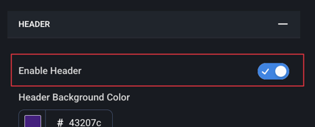 By default, the header is enabled. If you would like to disable the header and remove the space for the logo and menu navigation, you can turn the toggle switch to OFF.
