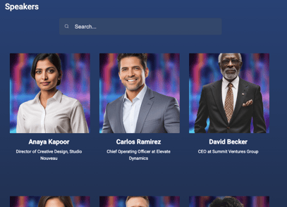 Speakers – Lets users browse available speaker bio information and any assets connected to the presenter.