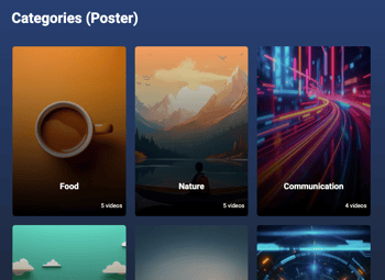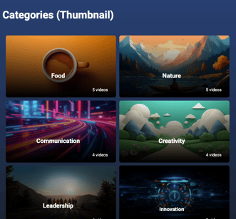 Categories – Displays your content grouped into categories, either with poster images or thumbnail grids.
