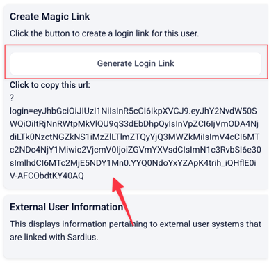 Once confirmed, click on “Generate Login Link” on the right hand side.