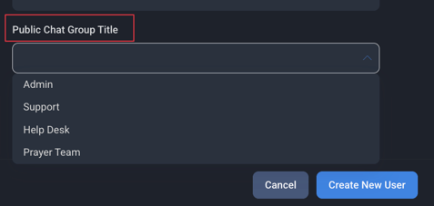 You also have the ability to set a Public Chat Group Title by clicking on the drop-down arrow and selecting the relevant Title (note: this feature will only be available if the Chat feature is turned on)