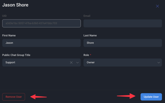 At any time, you will have the ability to Remove User or Update User information