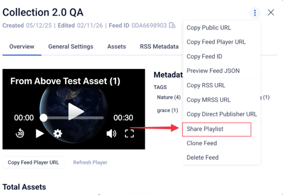 Turn any Feed into a shareable, embeddable playlist. Think of it like a YouTube playlist: This is available for any account with Feeds enabled.
