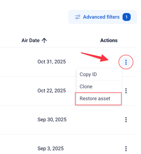 If an asset has been deleted from your library, it can be restored within 7 days of deletion. Restoring brings the file back into your active Assets list so it can be reused, republished, or reassigned to an event or channel.