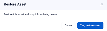 Note: Deleted assets remain recoverable for 7 days after deletion. Once this period passes, they are permanently removed and cannot be restored.