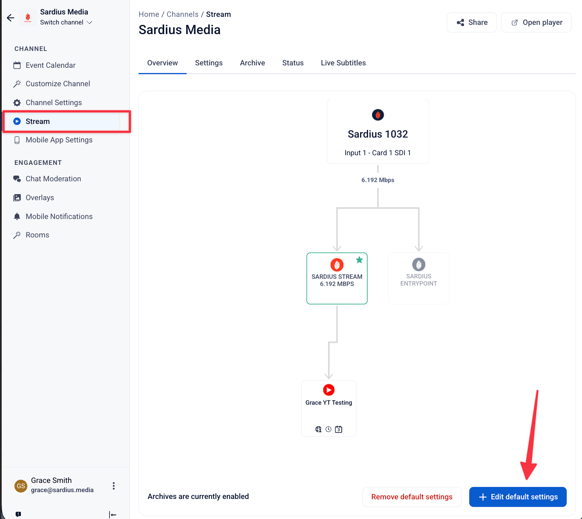 - While in your stream settings, click Edit Default Settings
