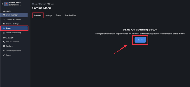 Click on "Set Up" to set up your EMLA Encoder with this channel.