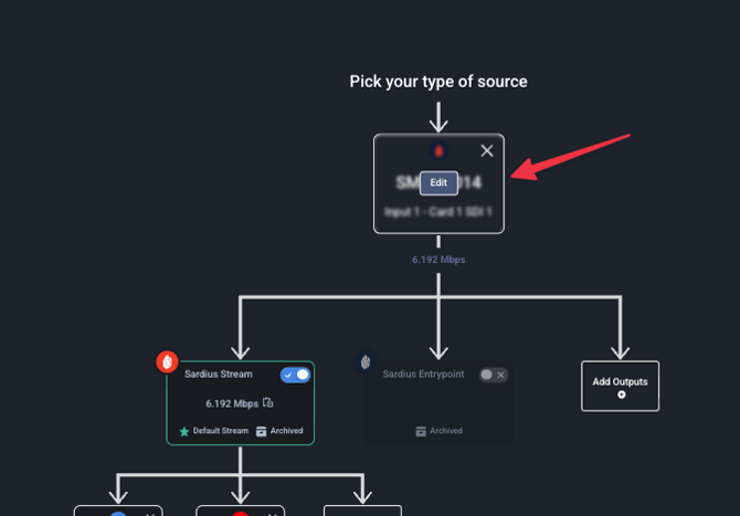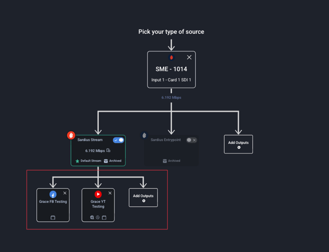 To do so, simply click the Add Outputs button and choose from your pre-configured outputs in your account.